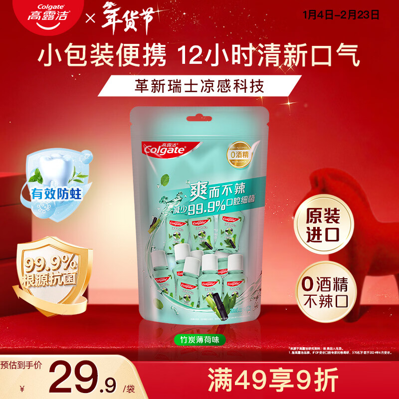高露洁(Colgate)竹炭薄荷便携漱口水20ml*10独立小包装含氟 旅行装小瓶 清新口气