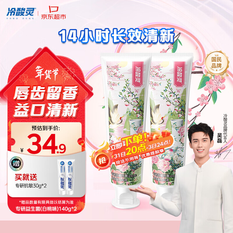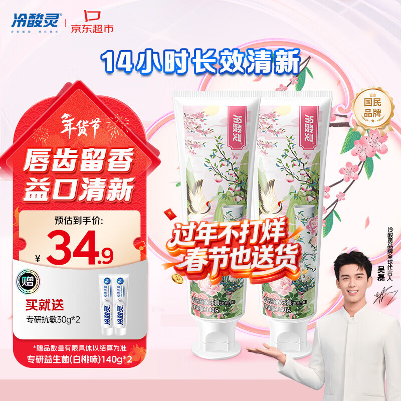 冷酸灵专研抗敏益生菌沁润白桃牙膏科学复配牙膏2支装280g 【吴磊同款】