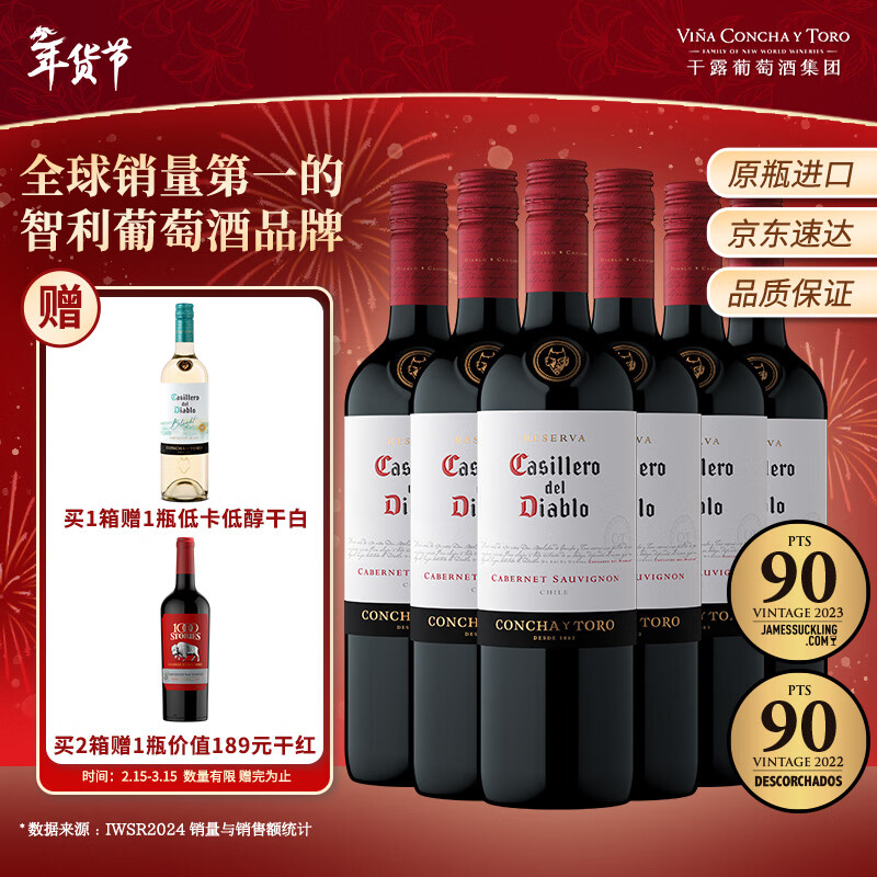 红魔鬼(Casillero del Diablo)珍藏赤霞珠干红葡萄酒750ml*6瓶整箱 智利原瓶进口红酒 年货热门