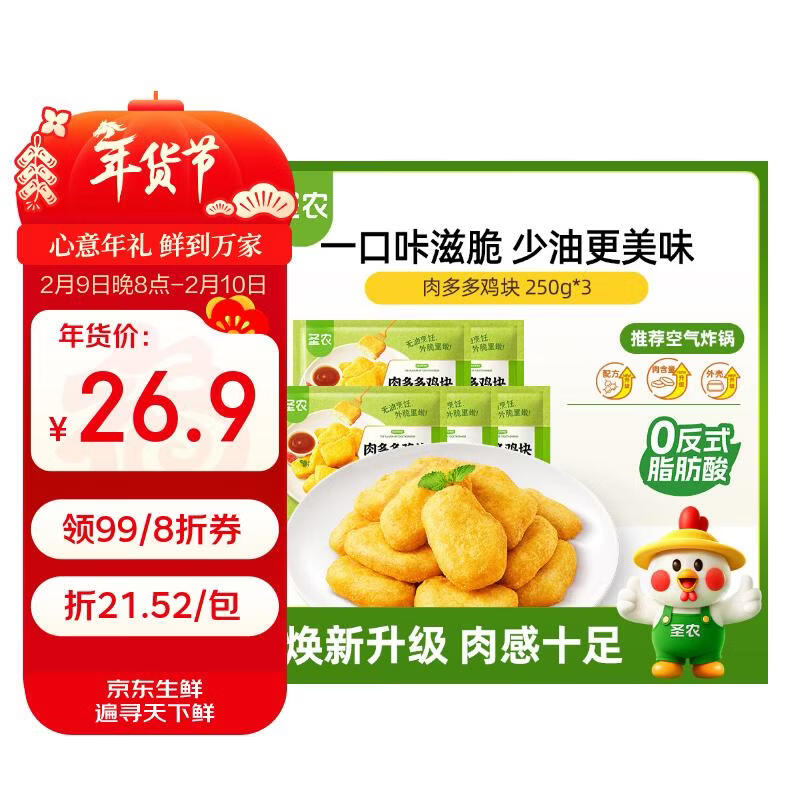 圣农肉多多鸡块 净重250g*3袋 冷冻油炸鸡块裹粉 空气炸锅食材