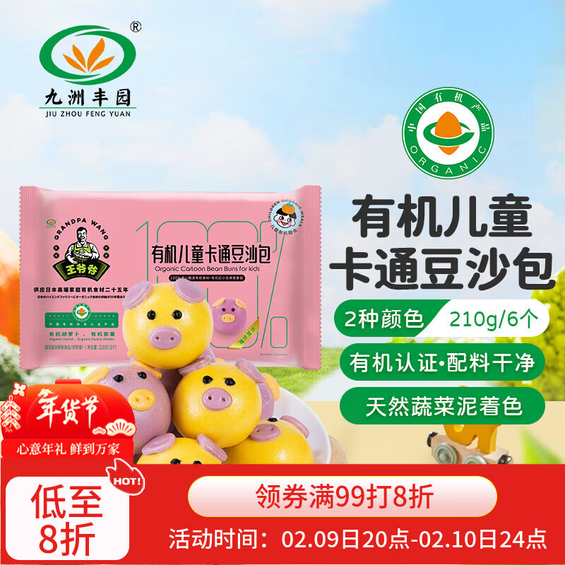 九洲丰园有机儿童猪猪豆沙包210g/6只 卡通包子宝宝早餐食品半成品年货节