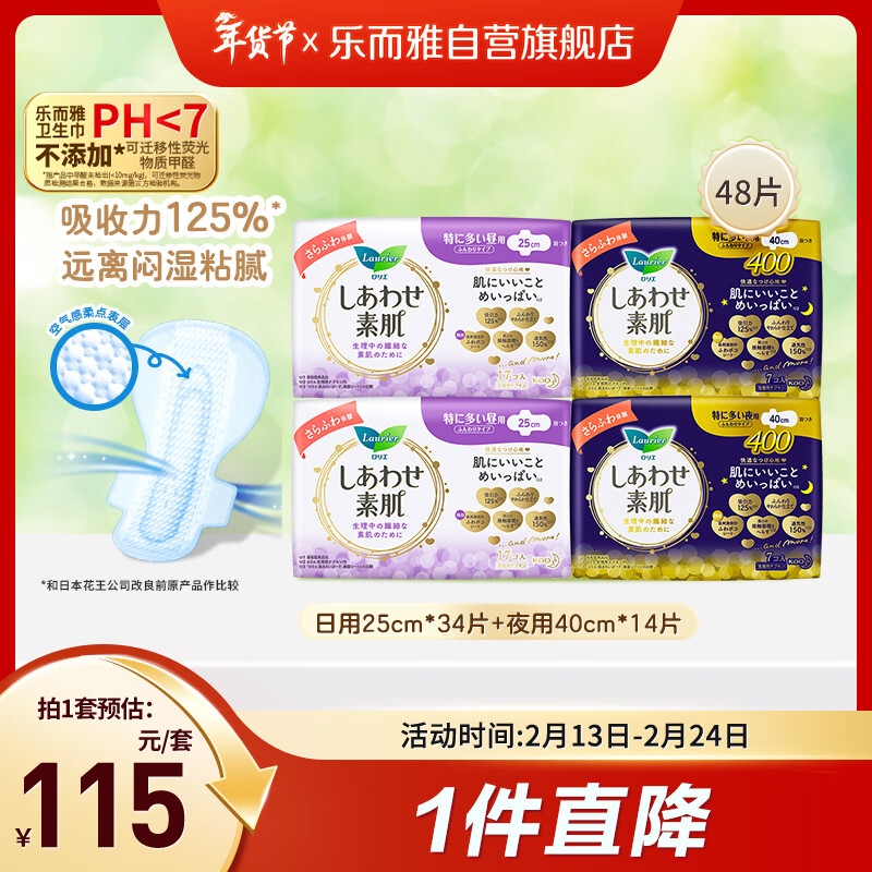 乐而雅花王进口F透气棉柔量多日夜安心卫生巾组合装48片姨妈巾京东自营