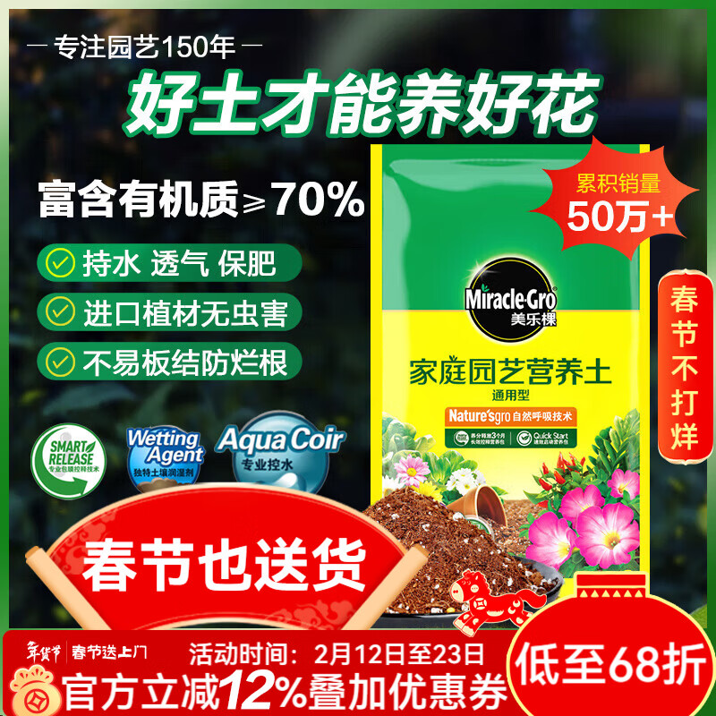 美乐棵 通用营养土养花花肥种植土花土肥料种菜土盆栽绿植专用土壤8L