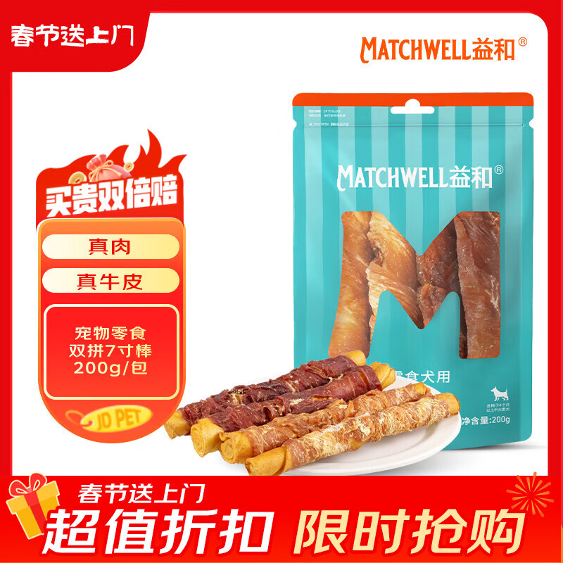 益和(MATCHWELL)狗零食磨牙棒鸡肉鸭肉二合一洁齿宠物中大型犬柴犬7寸磨牙棒200g