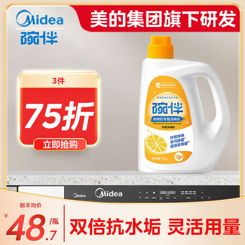 碗伴美的旗下 洗碗机用洗碗粉1kg 洗碗机洗涤剂洗碗机耗材双倍抗水垢