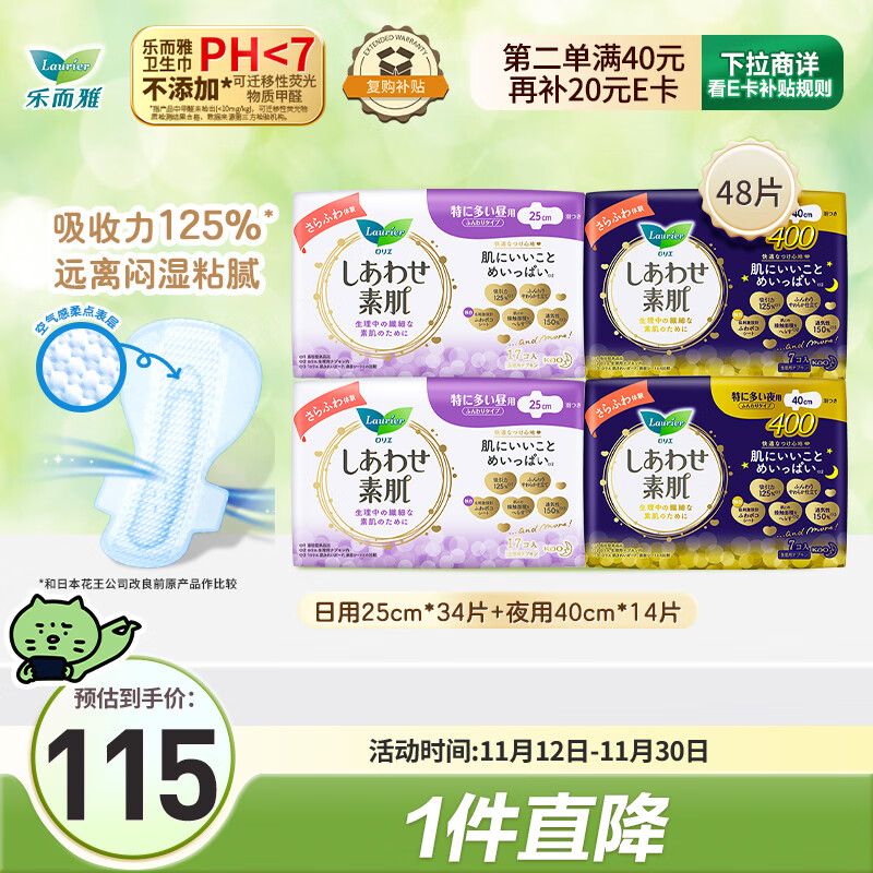 乐而雅花王进口F透气棉柔量多日夜安心卫生巾组合装48片姨妈巾京东自营