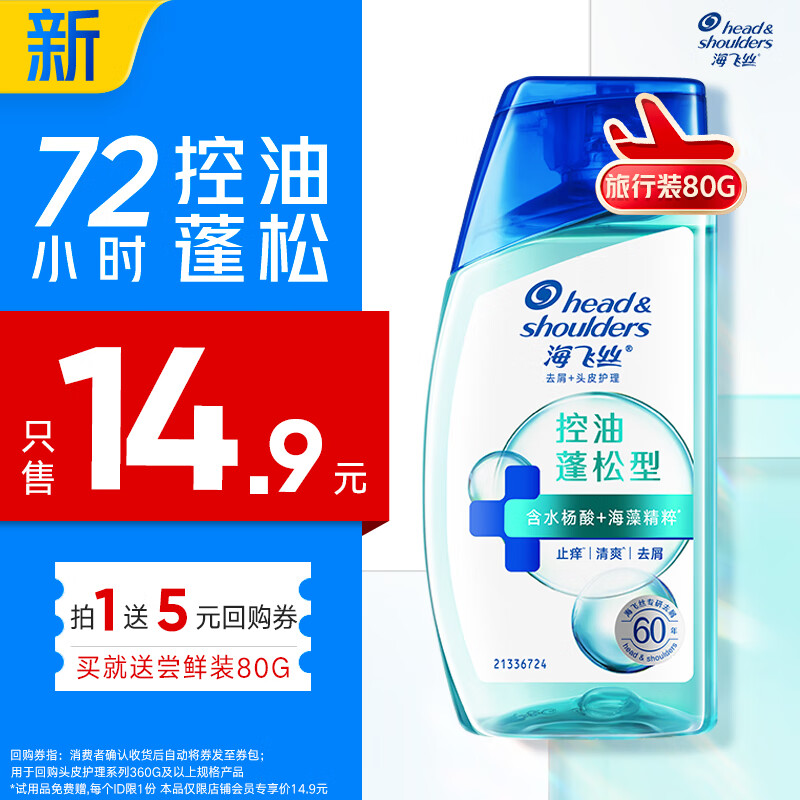 海飞丝头皮肌底控油蓬松旅行装洗发水【回购券】送80g控油去屑洗头膏