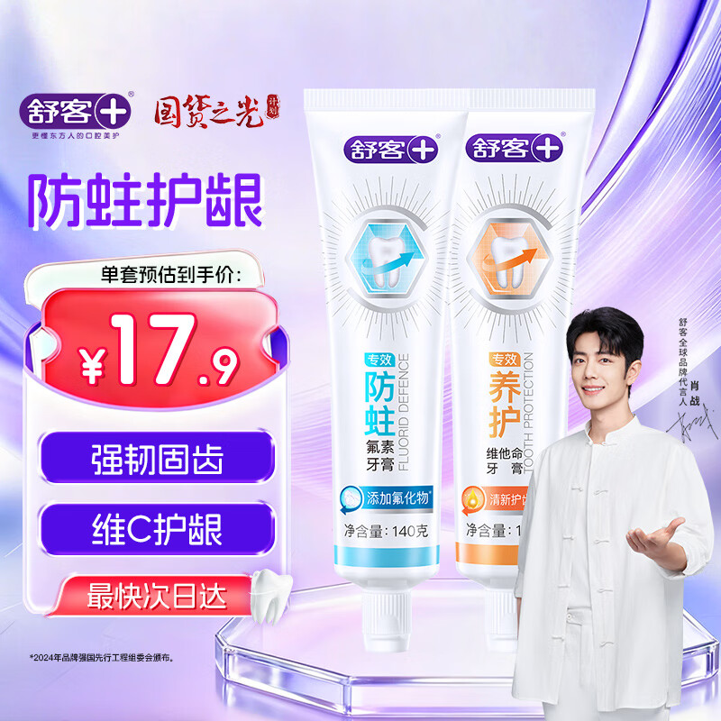 舒客肖战同款专效护龈防蛀牙膏 亮白固齿护牙龈 2支共260g新旧随机发