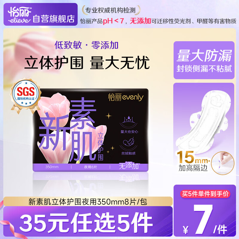 怡丽立体护围卫生巾棉柔透气超长夜用350mm8片京东自营官方旗舰姨妈巾