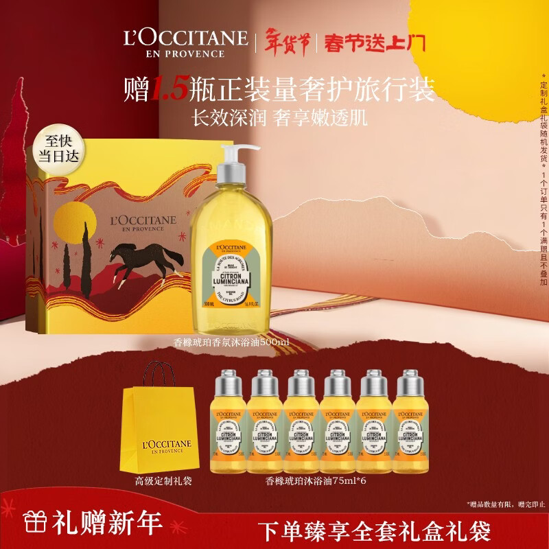 欧舒丹香橼琥珀甜扁桃沐浴油500ML年货礼盒沐浴露留香情人节礼物女生