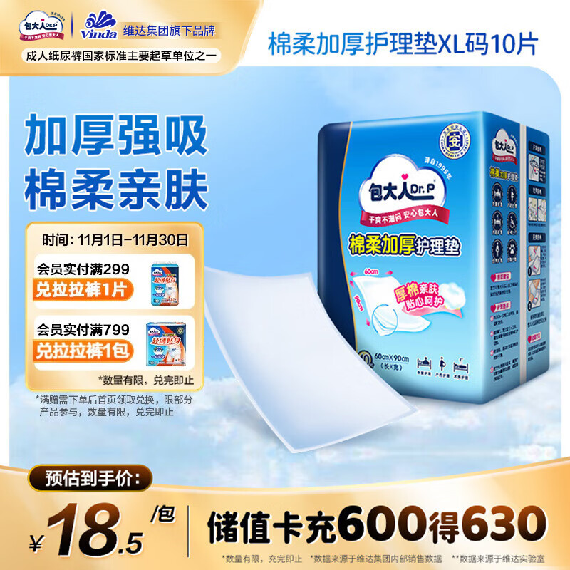 包大人(Dr.P)棉柔加厚护理垫XL10片(尺寸:60*90cm)婴儿产妇老年人隔尿垫