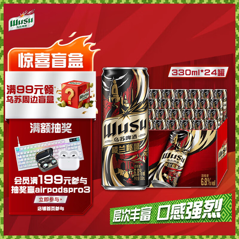 乌苏啤酒(wusu)京东自营楼兰秘酿330ml*24罐/箱整箱装精酿啤酒婚宴热门商品