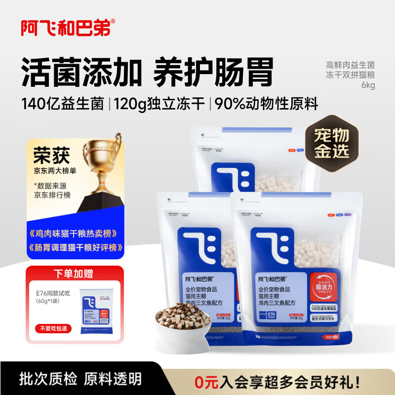 阿飞和巴弟猫粮E76益生菌全价冻干双拼猫粮全阶段通用猫粮2kg*3袋