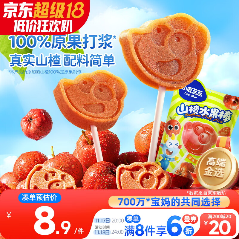 小鹿蓝蓝 宝宝山楂棒 儿童宝宝零食糖果 山楂棒棒新鲜果干制作 106g