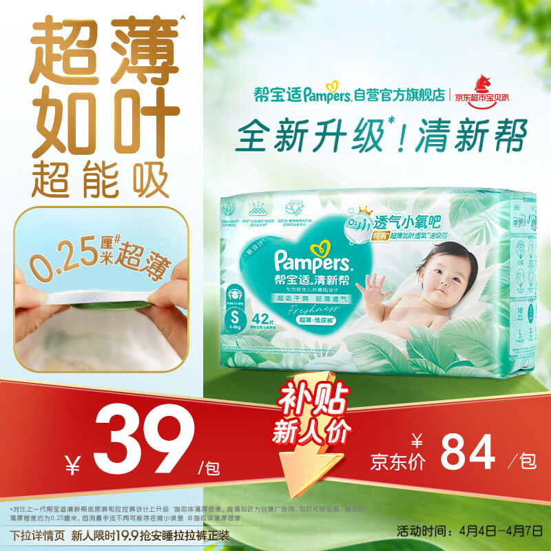 帮宝适超薄透气清新帮纸尿裤新生儿婴儿尿不湿尿片透氧Pro mini S42
