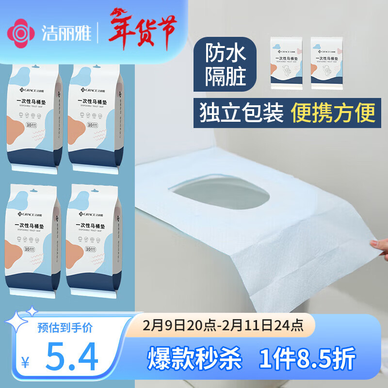 洁丽雅(Grace)一次性马桶垫10片旅行粘贴式酒店防水坐垫纸产妇坐便垫40*60cm