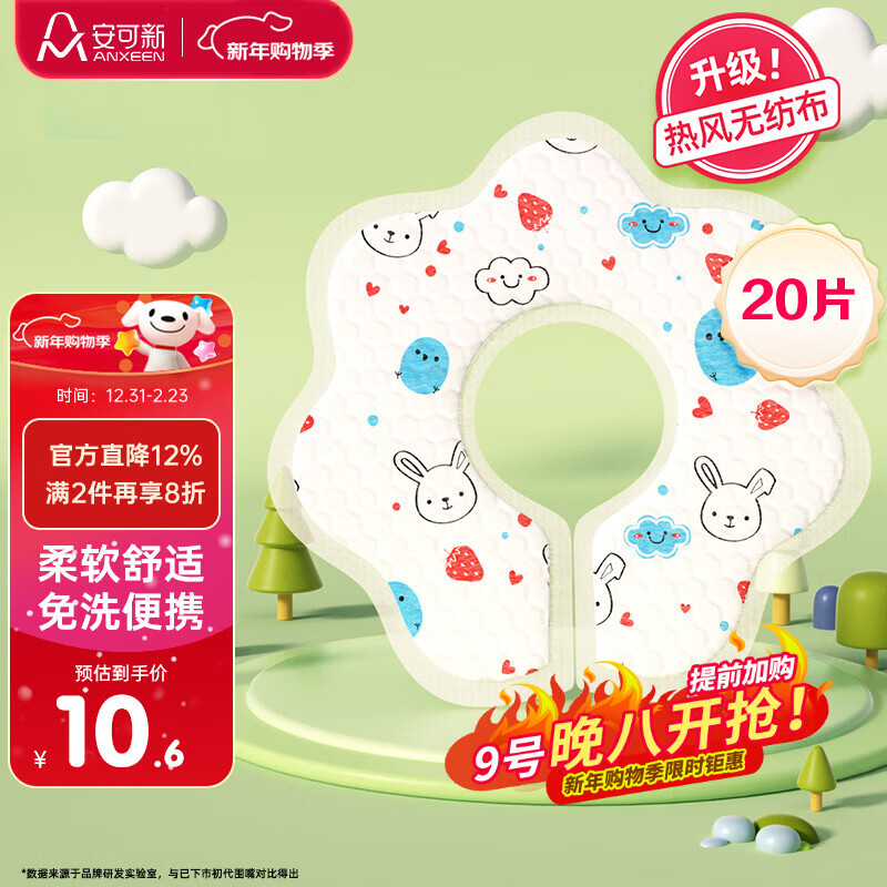 安可新 婴儿一次性口水巾婴幼儿围嘴可旋转免洗围兜独立装兔子款20片