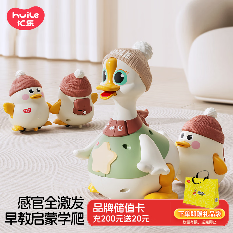 汇乐玩具学爬鸭鹅婴儿玩具抬头儿童早教宝宝男女孩摇摆鹅生日周岁礼物
