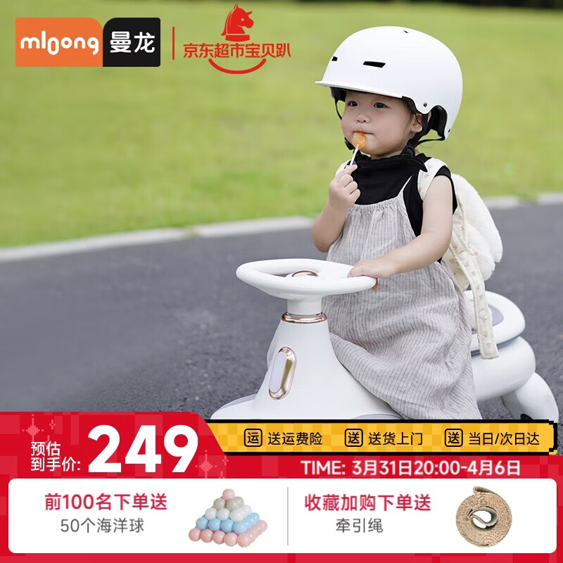 曼龙扭扭车1-3-6岁防侧翻大人可坐儿童溜溜车音乐摇摇车 云母白