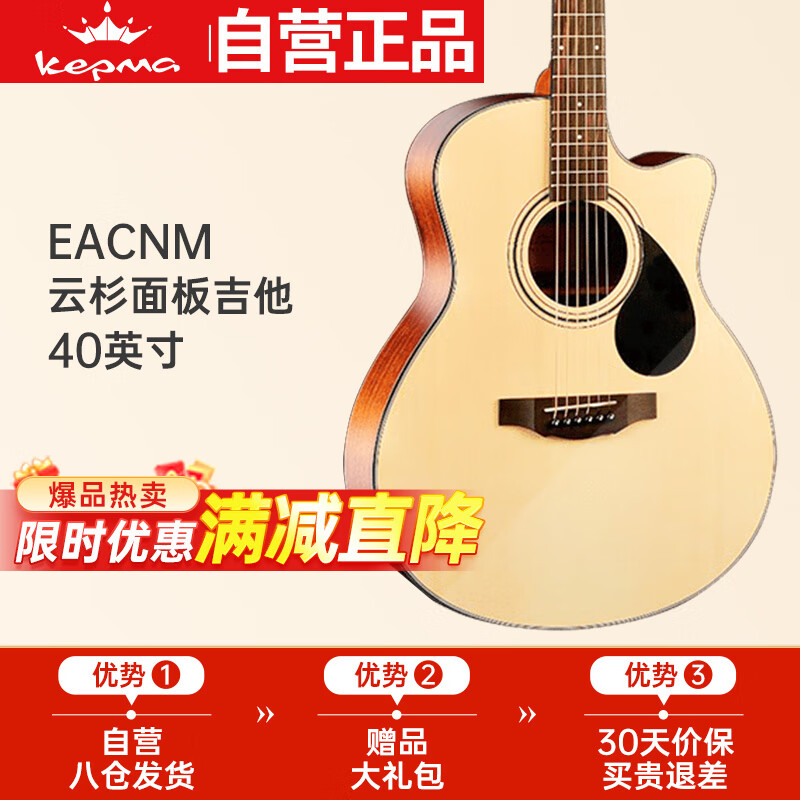 卡马卡普马EAC卡马卡玛民谣吉他初学者入门吉它 原木色40英寸