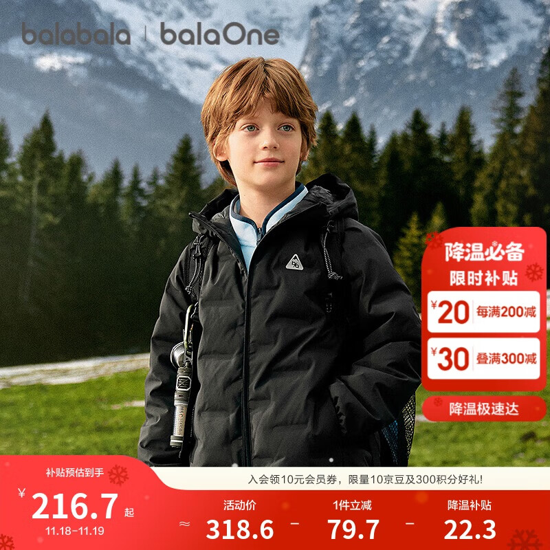 巴拉巴拉balaOne儿童羽绒服男童女童童装2025年冬季户外防护208425107233