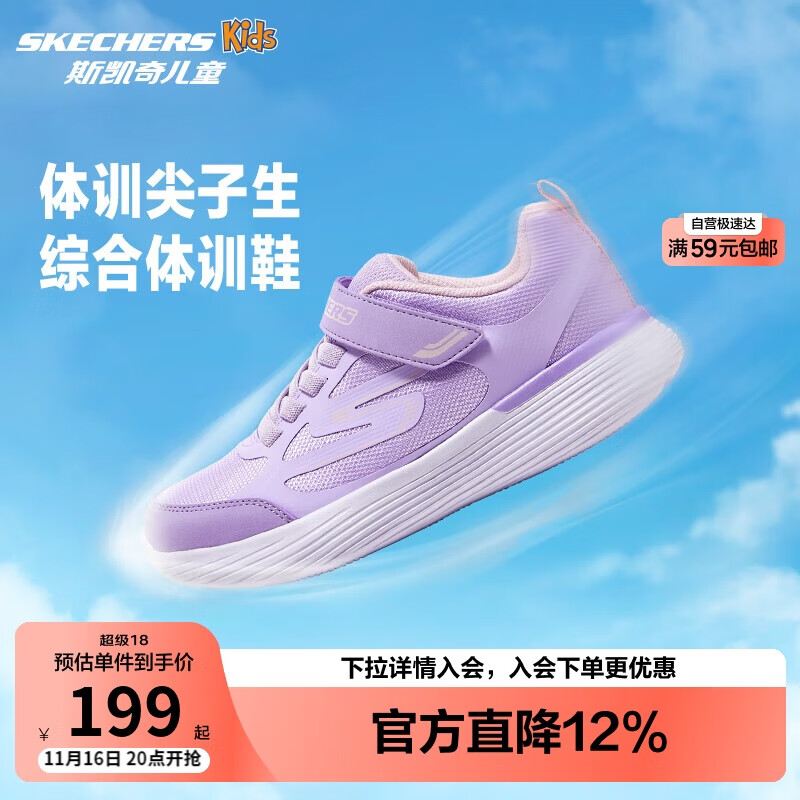Skechers斯凯奇自营儿童运动鞋女大童跑步鞋轻便减震魔术贴童鞋302429L