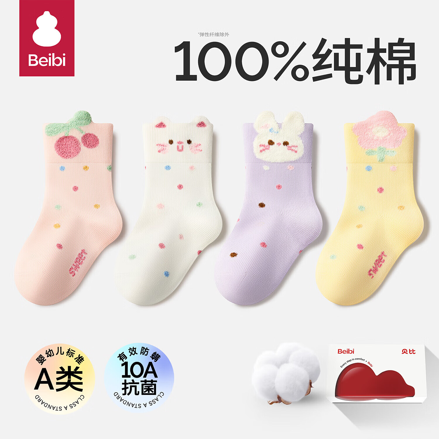 贝比婴儿袜子春秋款纯棉a类女童中筒袜无骨冬季新生幼儿宝宝袜不勒腿