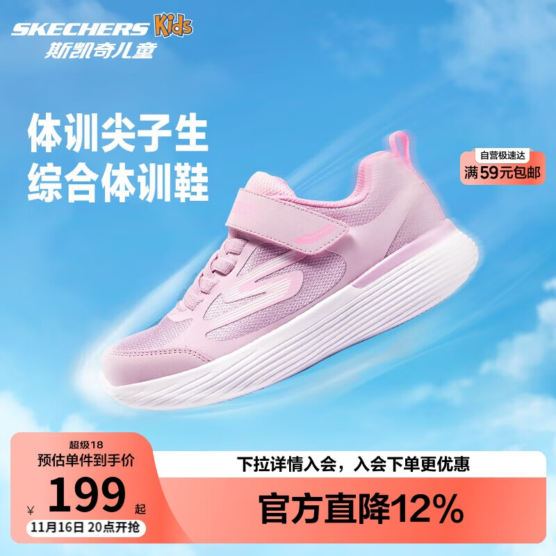 Skechers斯凯奇自营儿童运动鞋女大童跑步鞋轻便减震魔术贴童鞋302429L