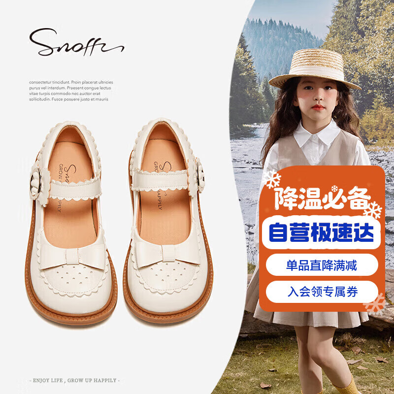 斯纳菲童鞋春秋女童皮鞋演出鞋可爱公主鞋软底皮鞋中大童单鞋奶油白28