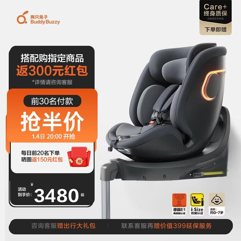 两只兔子儿童安全座椅婴儿安全座椅儿童座椅APP通风加热 求知2pro极空黑