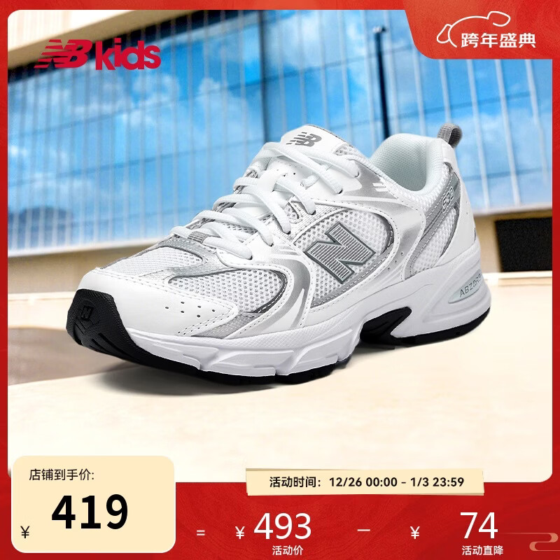 NEW BALANCE7-14岁男女童液态银网面运动鞋GR530AD