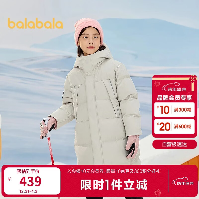 巴拉巴拉儿童羽绒服中长款冬加厚外套男女童2025连帽亲子装保暖防风防泼水