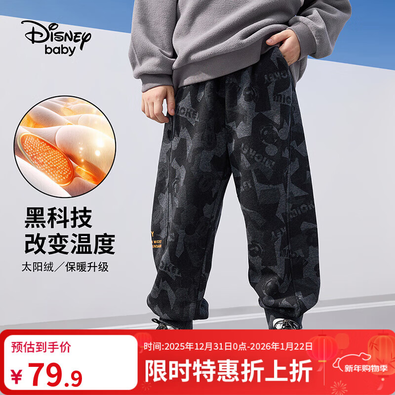 迪士尼(DISNEY)童装儿童男童加绒运动长裤宝宝时尚帅气裤子24冬DB331ME04花130