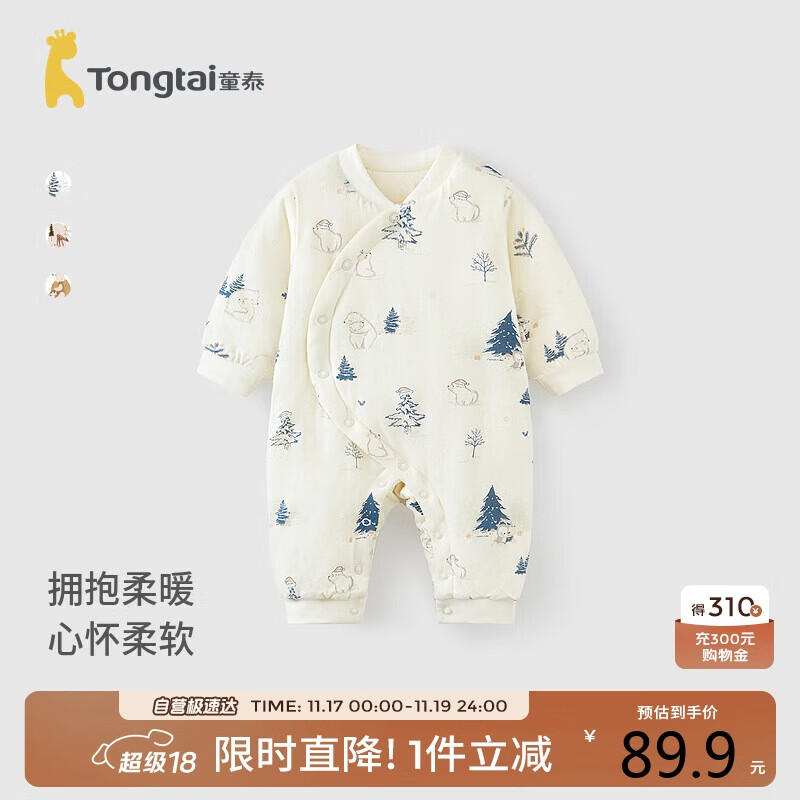 童泰(TONGTAI)婴儿连体衣秋冬季纯棉宝宝夹棉衣服儿童家居服哈衣爬服蓝色80cm