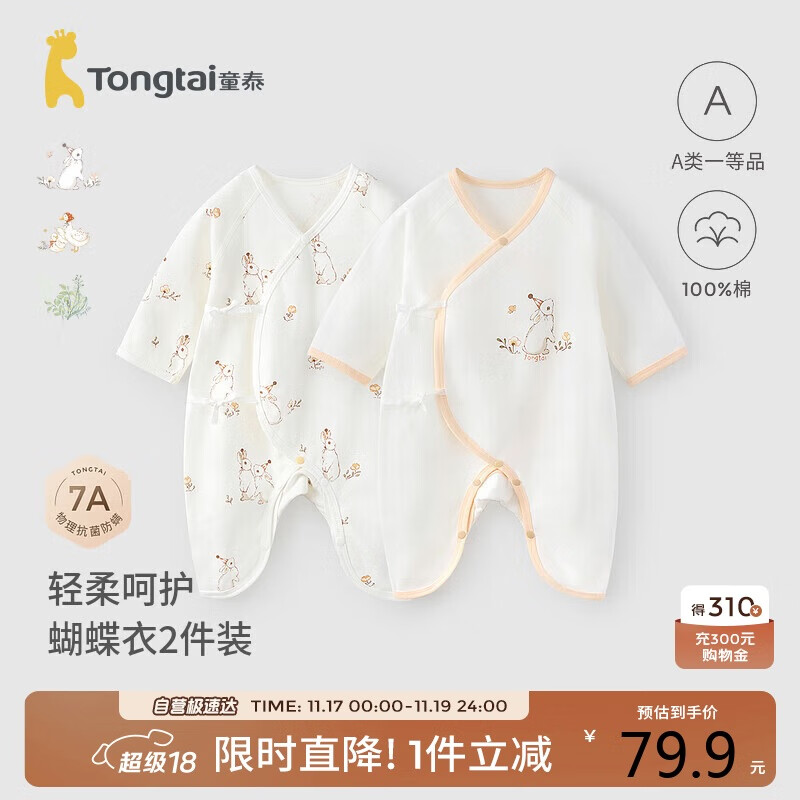 童泰(TONGTAI)婴儿连体衣春秋季纯棉衣服初生宝宝蝴蝶哈衣爬服和尚服白色66cm