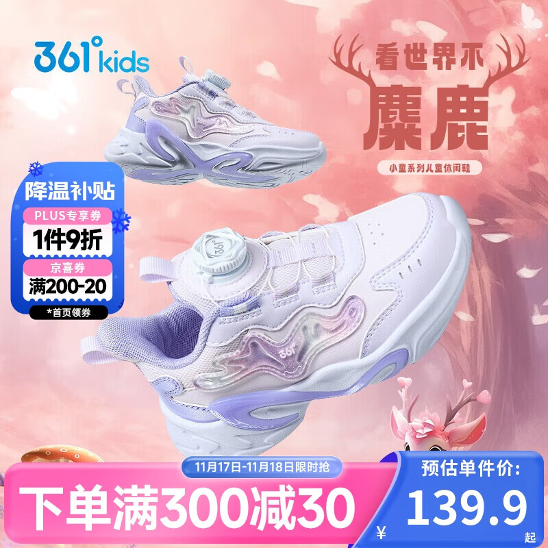361°童鞋 儿童运动鞋25冬女小童轻盈革面旋钮扣休闲鞋 紫28