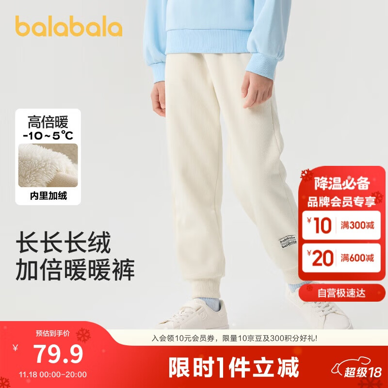 巴拉巴拉儿童长裤男童女童加厚加绒裤子冬装亲子百搭休闲束脚208424108227