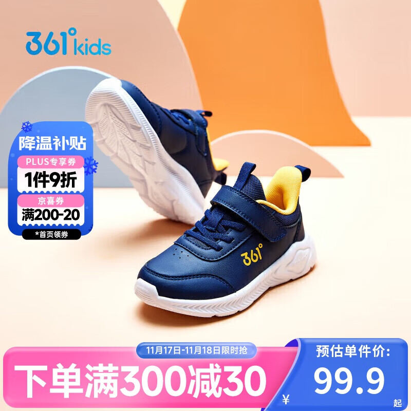 361°童鞋 儿童运动鞋25冬季男女童3-14岁皮革校园跑鞋 黄28