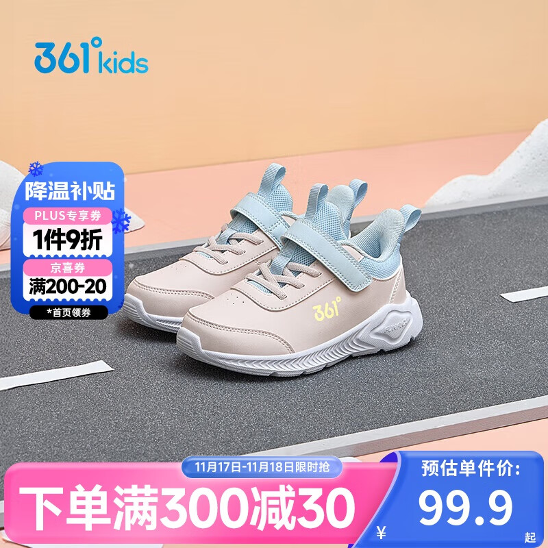 361°童鞋 儿童运动鞋25冬季男女童3-14岁皮革校园跑鞋 粉31
