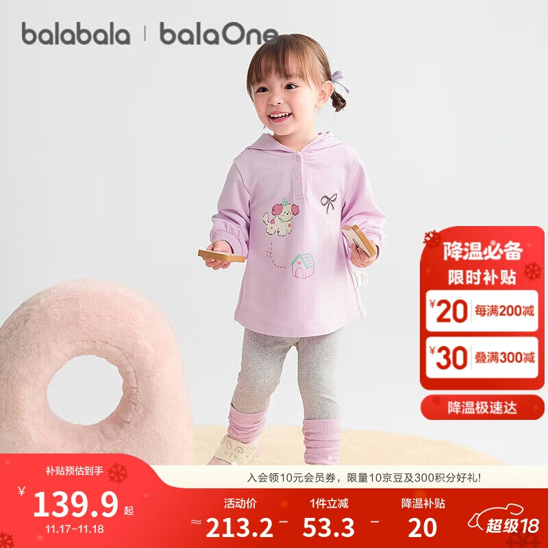 巴拉巴拉balaOne宝宝套装女童长袖2件套儿童2025秋装宽松可爱208325104006
