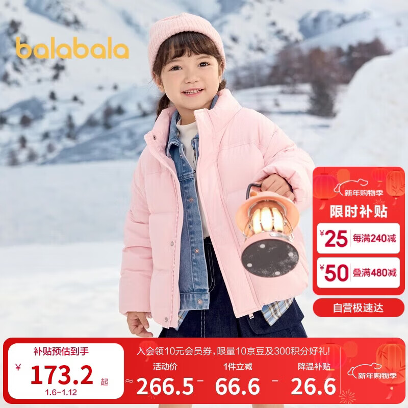 巴拉巴拉儿童羽绒服冬季男女童保暖拼接外套24107213