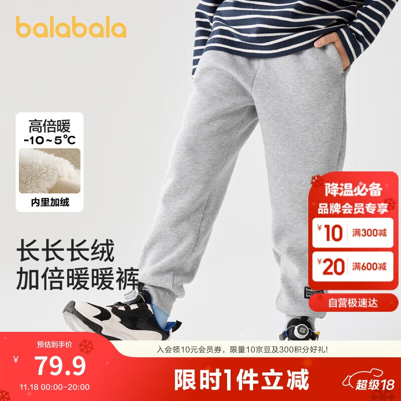 巴拉巴拉儿童长裤男童女童加厚加绒裤子冬装亲子百搭休闲束脚208424108227