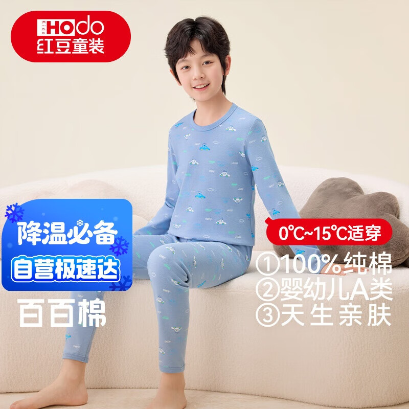 红豆纯棉秋衣秋裤中大童秋冬内衣套装儿童居家睡衣M1079小警车150