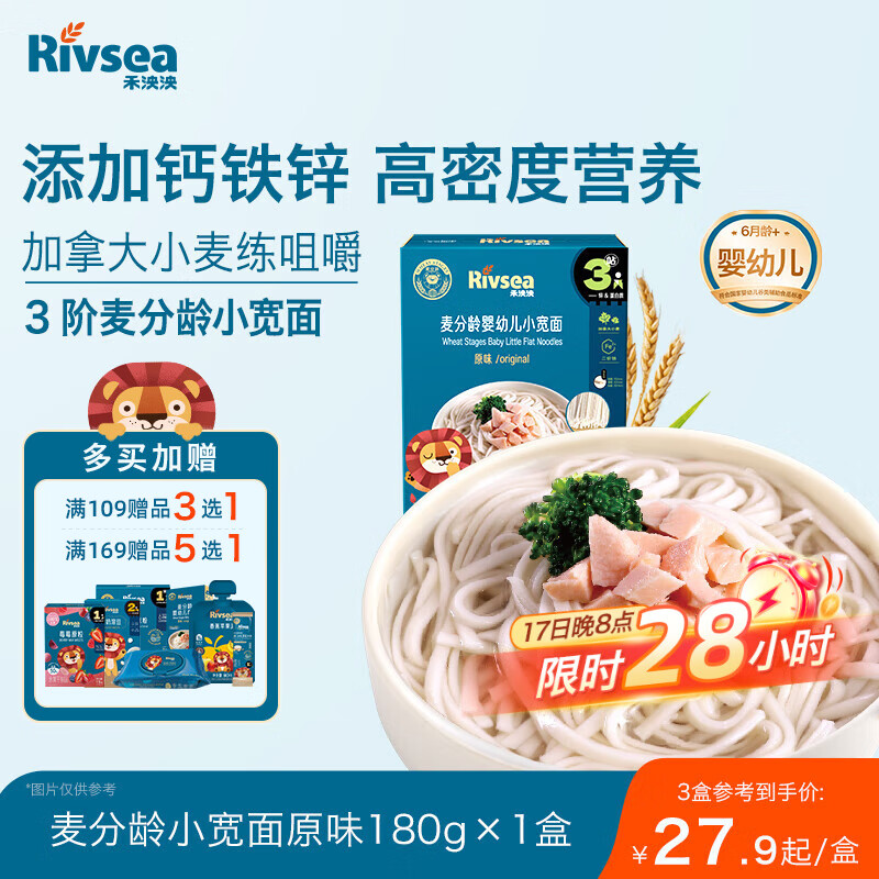 禾泱泱婴幼儿小宽面原味180g含钙铁锌麦分龄面条宝宝辅食6月+