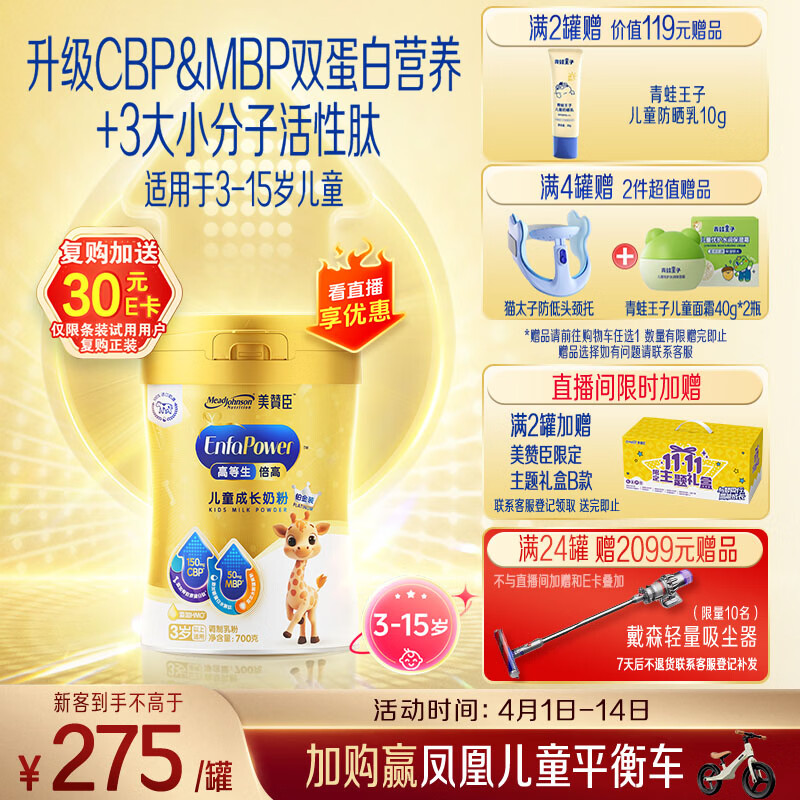 美赞臣高等生倍高儿童奶粉铂金装700g*1罐 3-15岁 CBP+MBP