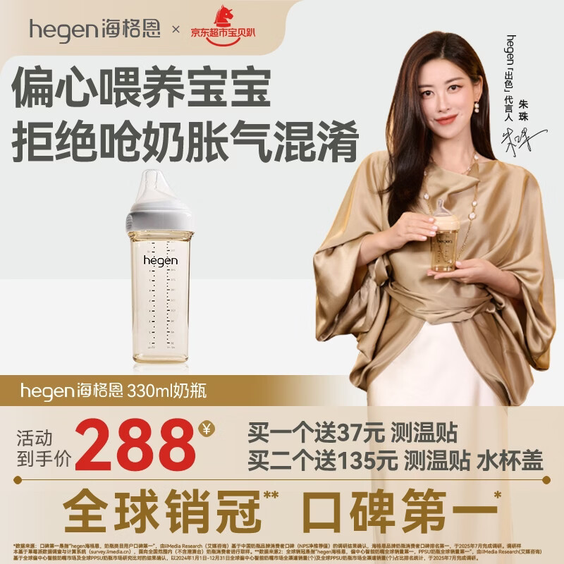 HEGEN海格恩奶瓶1-3岁PPSU防胀气防呛仿母乳原装进口330ml新生儿6个月+