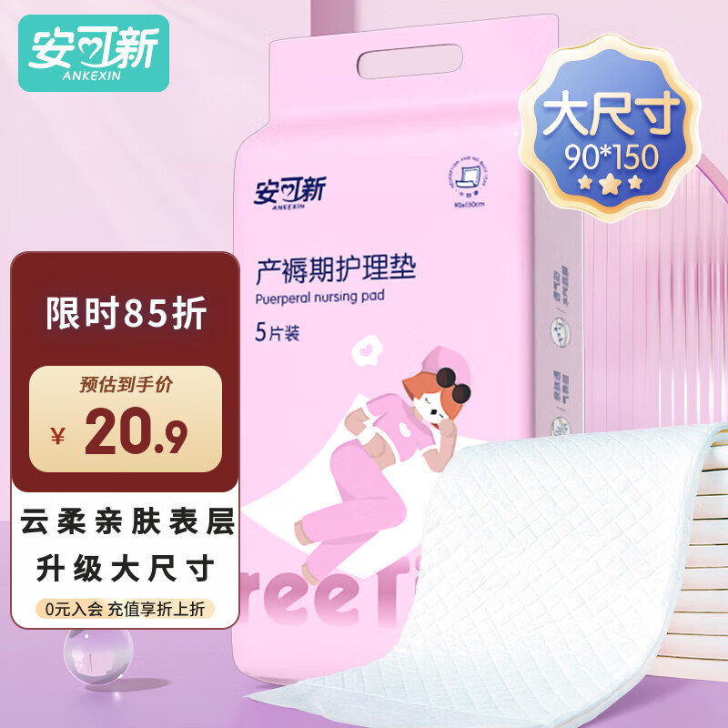 安可新孕产妇产褥垫护理垫5片成人隔水隔尿垫升级款月经垫大号90*150cm