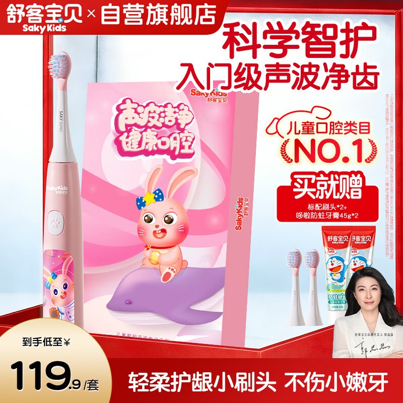 舒客宝贝(sakykids)儿童电动牙刷软毛护龈声波双重模式智能定时B32s粉3-12岁生日礼物