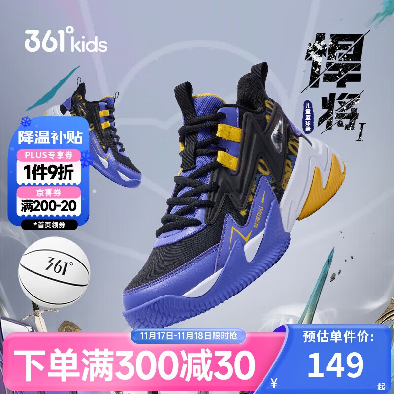361°悍将 儿童篮球鞋25四季青少年实战训练硬底耐磨篮球鞋 紫41