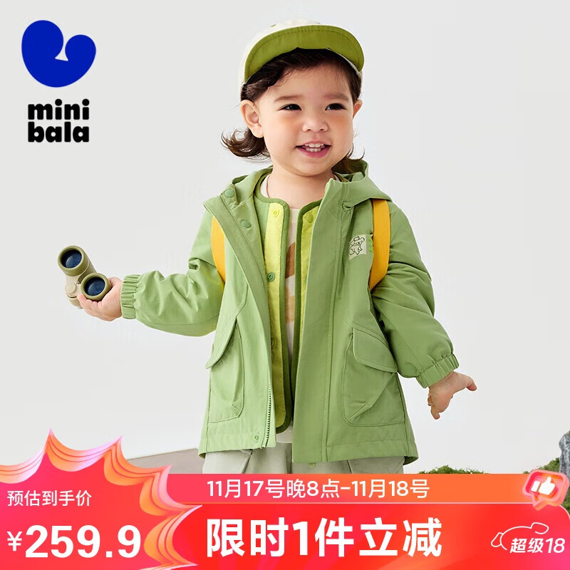 迷你巴拉巴拉男女童三防连帽两件套外套防风保暖亲肤夹克【小软皮】